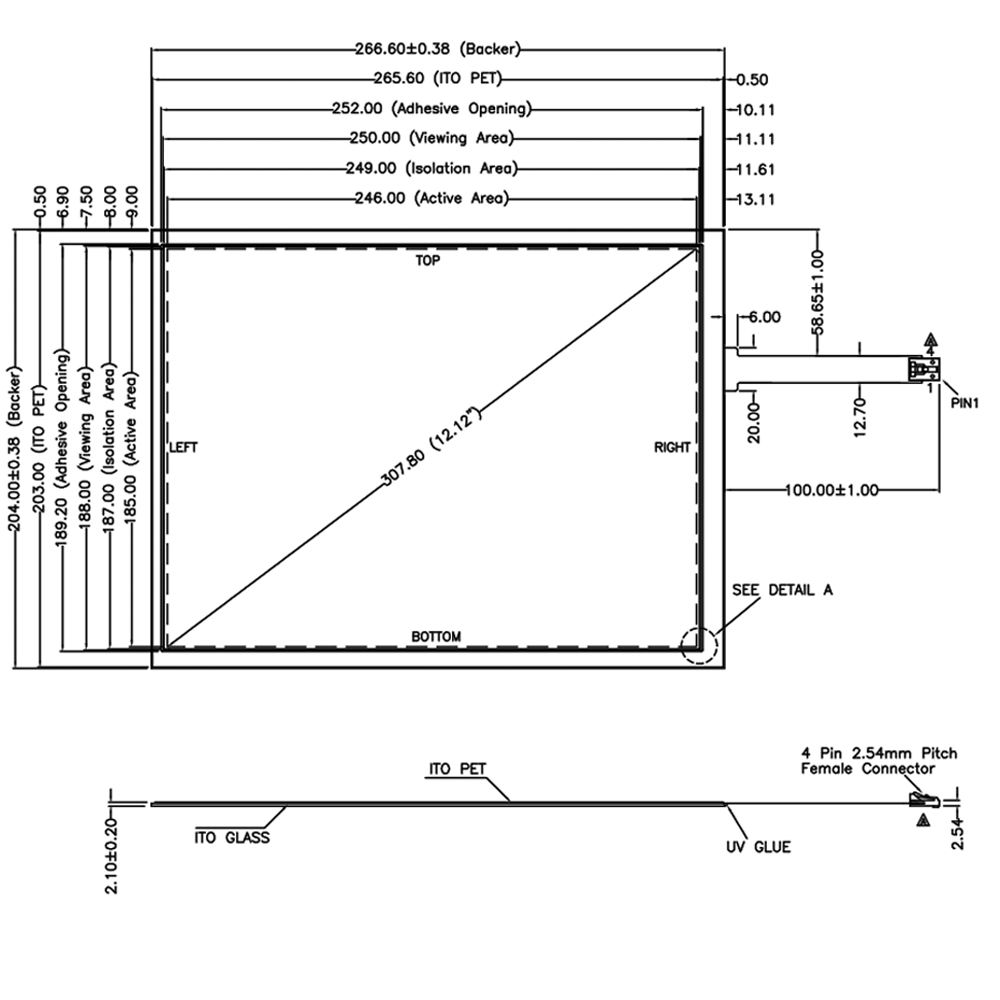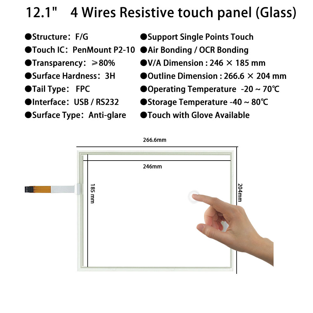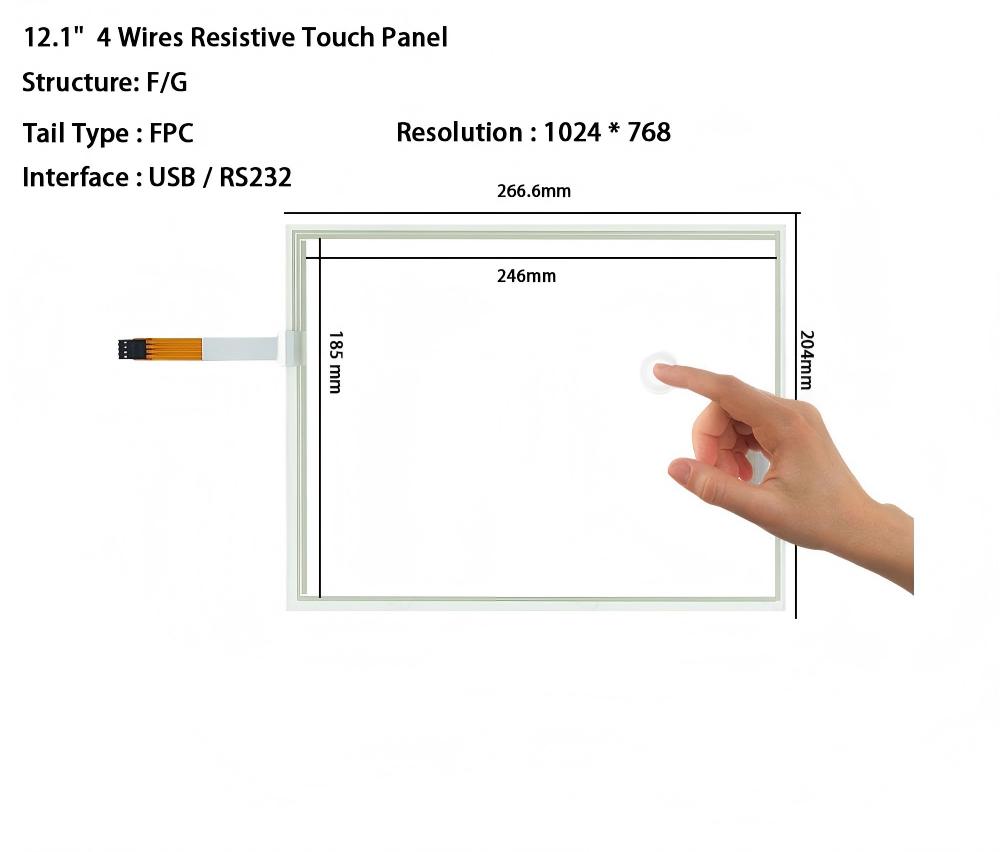 12.1 Inch Touch Screen RTP USB / RS232 Interface 4 Wires Resistive AMT9542 1024*768