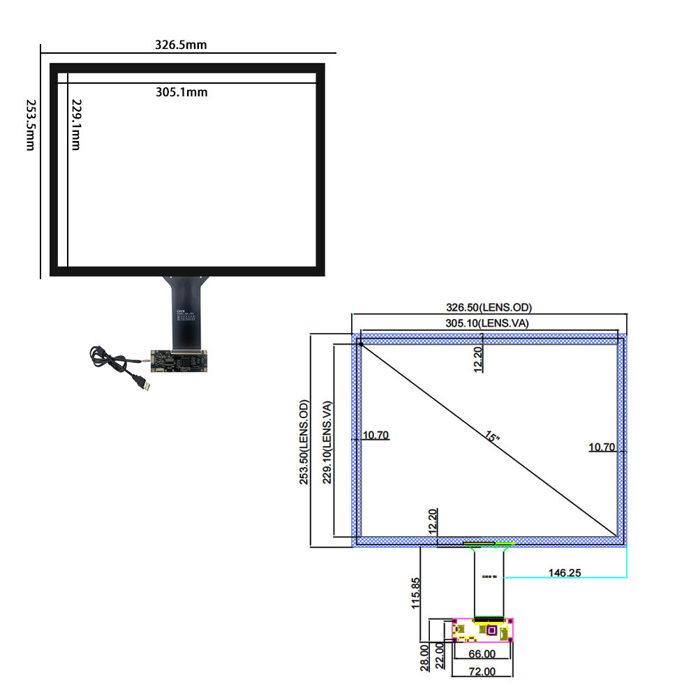 15 Inch Touch Screen Without Touch Control Board 1024*768 LCD USB / I2C Interface PCAP