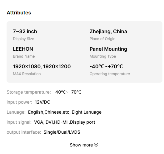 Key attributesDisplay Size7~32 inchPlace of OriginZhejiang, ChinaBrand NameLEEHO