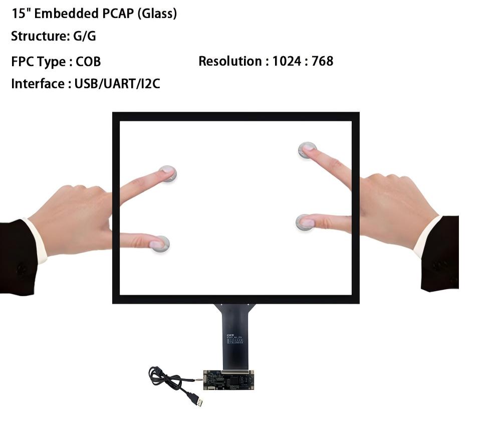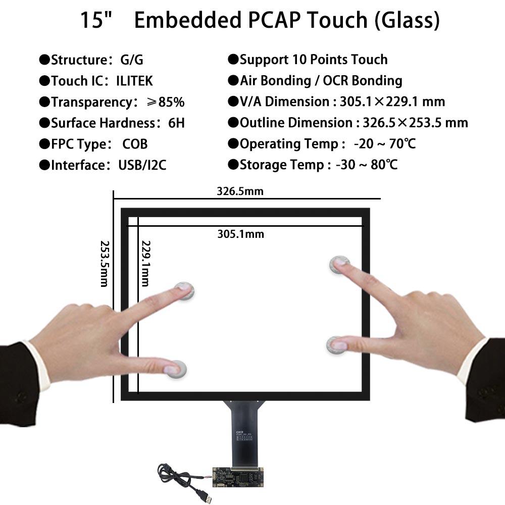 15 Inch Touch Screen Without Touch Control Board 1024*768 LCD USB / I2C Interface PCAP